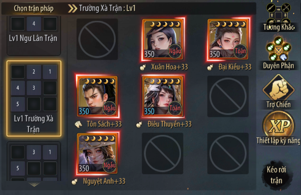 Đội hình Hỗ Trợ Tôn Sác gồm các tướng: