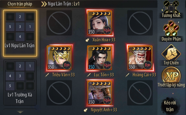 - 3 Bộ Binh kết hợp với 2 Hỗ Trợ giúp tăng binh lực, giảm sát thương nhận vào từ cung binh, tạo thế trận vững chắc, áp lực liên tục lên đối thủ mà khó bị phá tuyến.