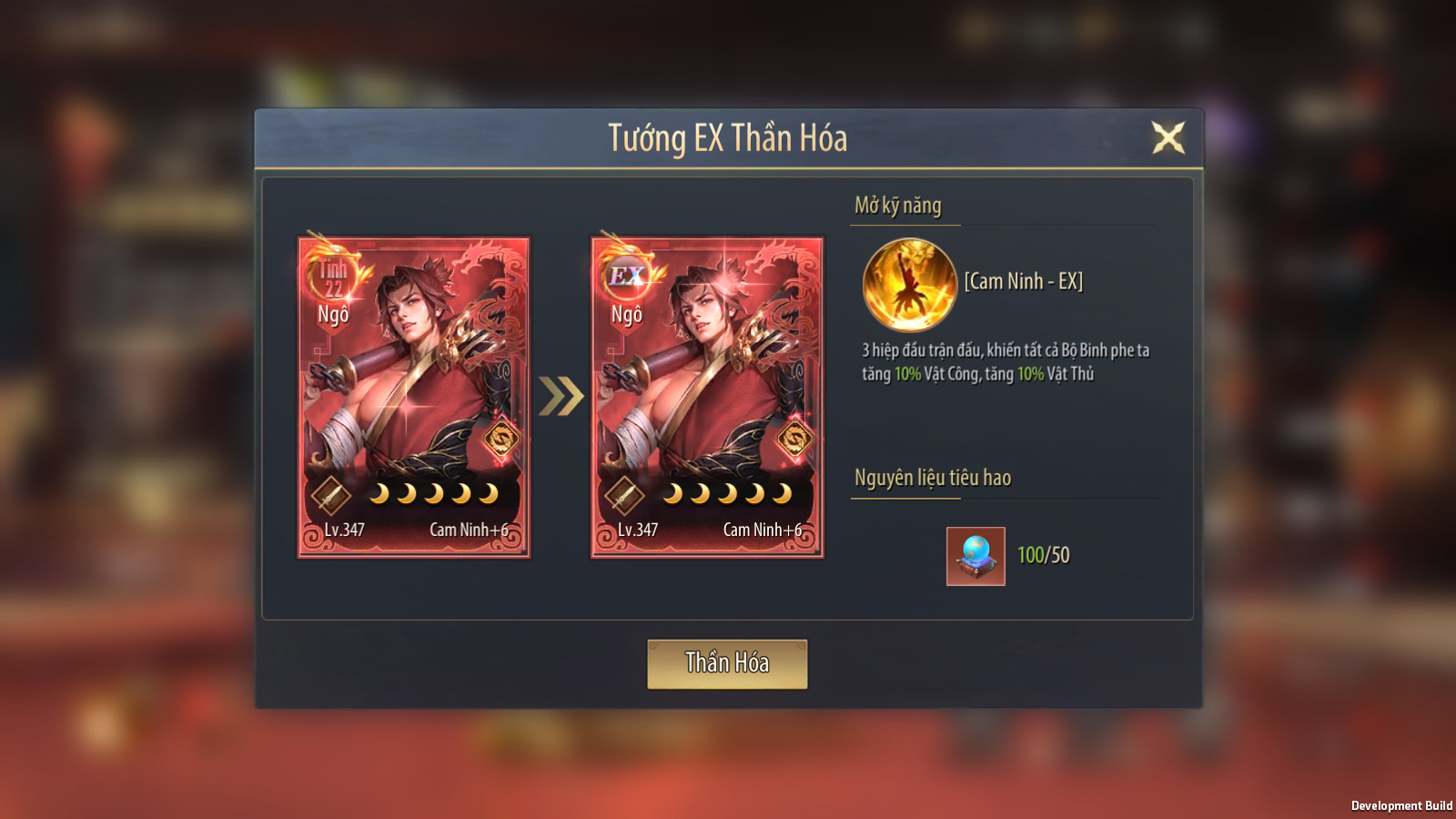 Tướng Tư Chất 22 – Có Thể Thần Hóa lên thành Tướng EX – mở thêm kỹ năng mới