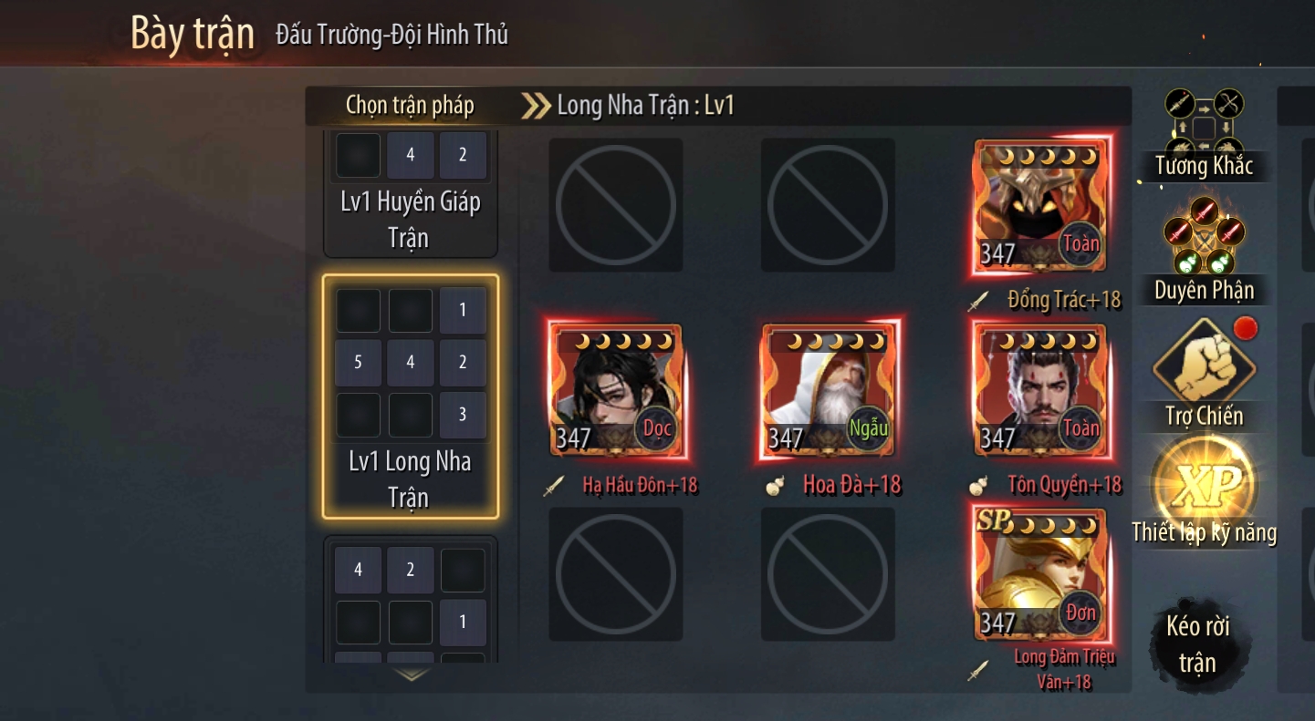 - Đội hình SSS: Long Đảm Triệu Vân – Đổng Trác – Hạ Hầu Đôn – Hoa Đà – Tôn Quyền.