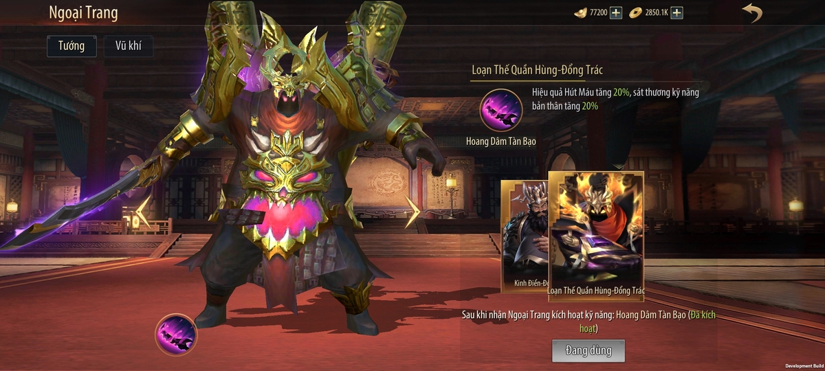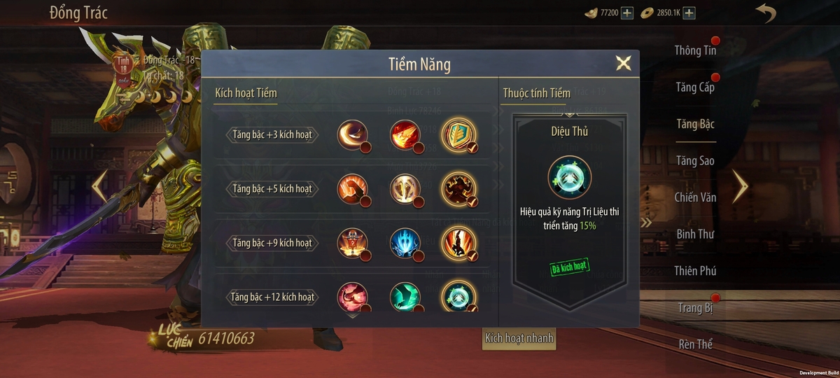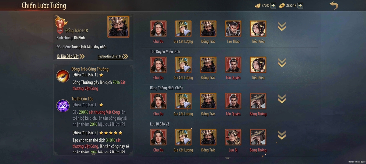 - Tên tướng: Đổng Trác (Tư chất 18, có thể nâng cấp lên 22).