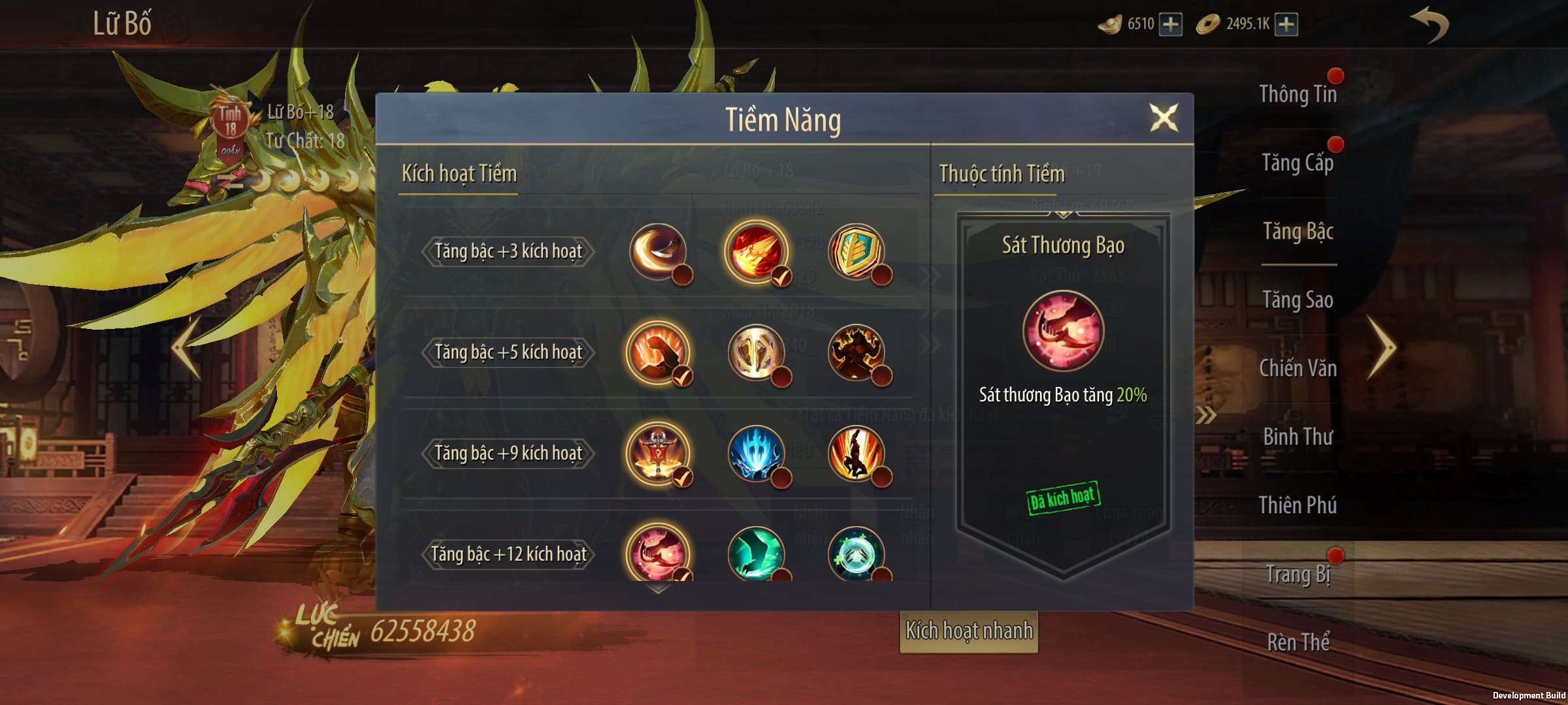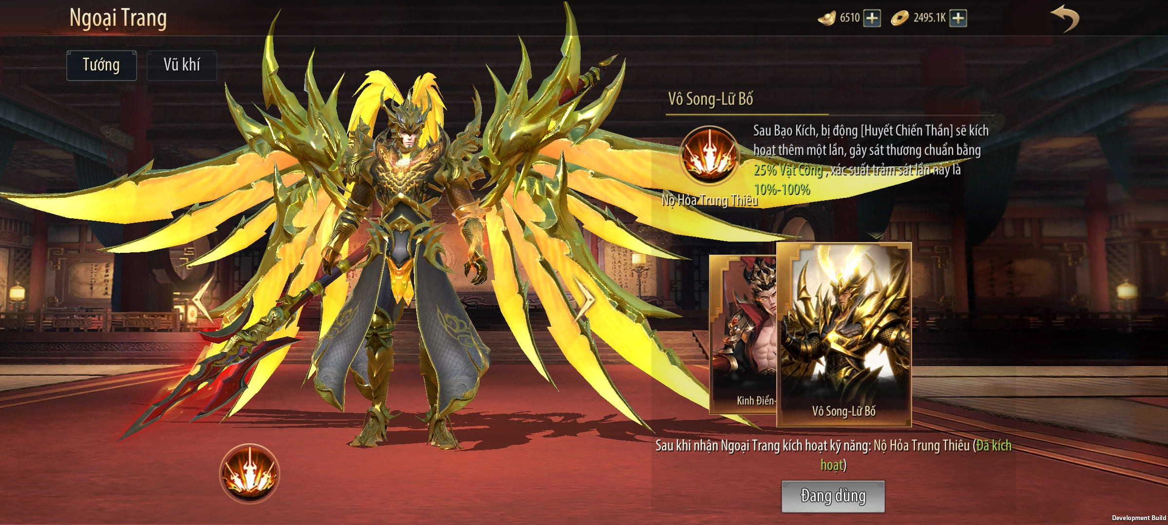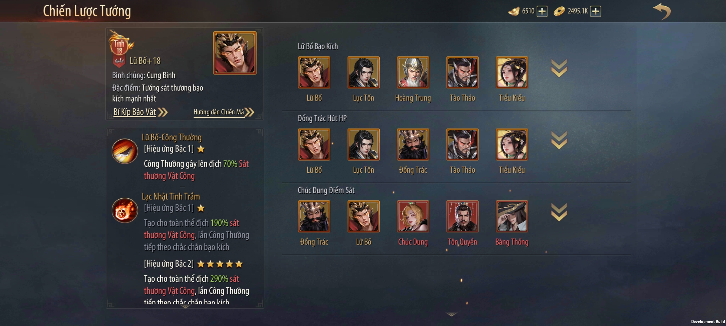 - Tên tướng: Lữ Bố (Tư chất 18, có thể nâng cấp lên 22).
